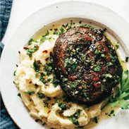 - Done: Serve up a mushroom steak on a dollop of creamy potatoes and – you guessed it – spoon the last of your chimichurri over the top. Salt, pepper, red pepper flake it… and you’re good to go!
