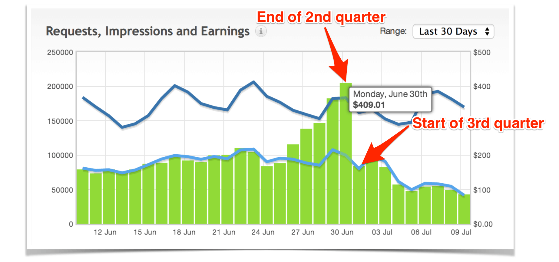 Two things. We had more sponsored post payments then usual and it was the last month of the 2nd quarter (thus better ad network earnings).