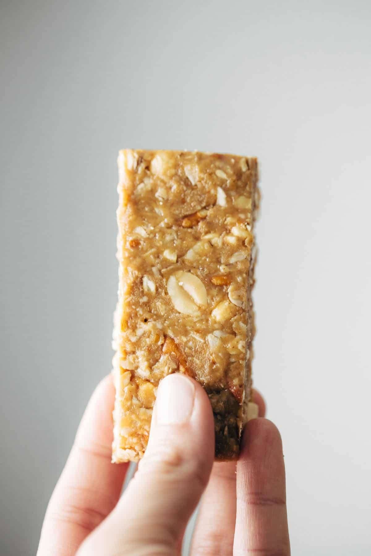 Made with PB, honey, vanilla, oats, pretzels, peanuts (and any other add-ins you like). So easy and SUPER yummy!